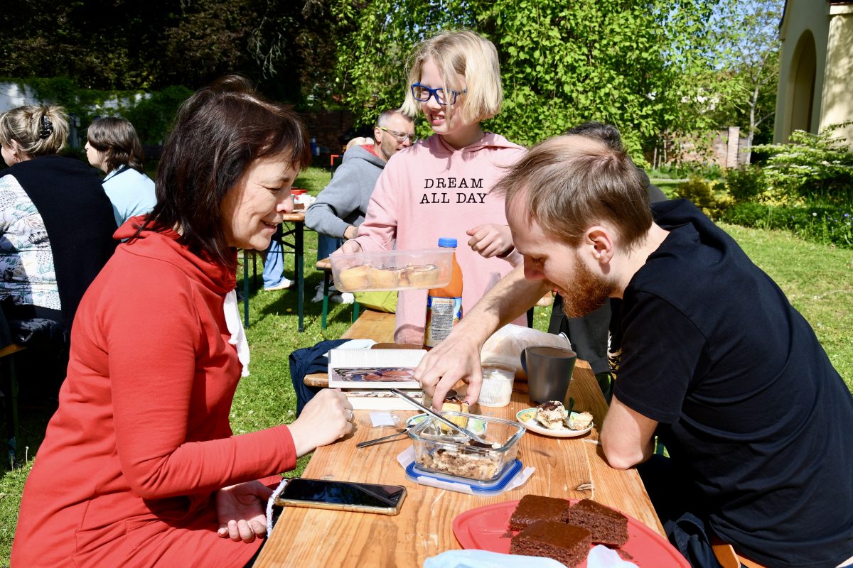 Férovou snídani v sobotu 10. května organizovalo komunitní centrum již potřetí, letos ji nově spojilo s knižním bazárkem. Přišli tak i zájemci o prodej, výměnu či nákup dobrých knížek. “Zase jste to posunuli o level výš. Zahrada je nádherná a skvělá pro děti, navíc letos vyšlo počasí,” zhodnotila Šárka Šmídová, která s malým synem dorazila shodou náhod už podruhé až z Českých Budějovic.