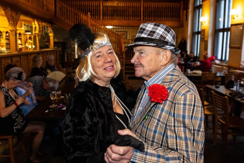 V dobový šantán se proměnil v úterý 11. listopadu Saloon Restaurace Rožátov na Ptácké ulici. Konaly se zde totiž tradiční Čaje o čtvrté, tentokrát ovšem na speciální téma. Téměř čtyři desítky seniorů si v kostýmech šansonových zpěvaček, prvorepublikových gentlemanů, kankánových tanečnic i krčmových povalečů užilo tři hodiny posezení a tance při hudbě Zdeňka Koštíře.